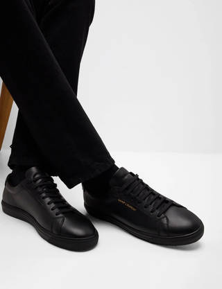Saint Laurent Andy Leather Low-Top Court Sneakers Black Men's Size 44 / 10.5