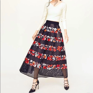 Sachin & Babi Milton Striped Eyelet Floral Midi Ball Skirt Black/Red Women's S