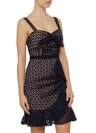 Self-Portrait Sweetheart Tie Ruffled Broderie Eyelet Mini Dress Navy Women's 2