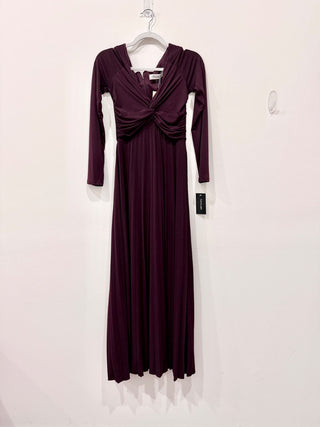 Taylor Twisted Bust V-Neck Pleated A-Line Maxi Dress Mahogany Purple Women's Size 4