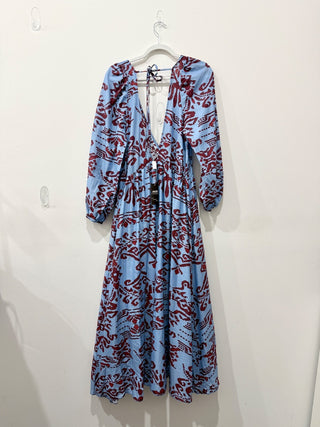Tanya Taylor Printed Klara Long Sleeve V-Neck Wrap Top Blouse Blue Womens Size 6