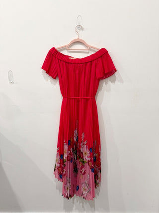 Taylor Foral Print Sleeveless Smocked Midi Tank Dress Blue/Pink Women's Size 2