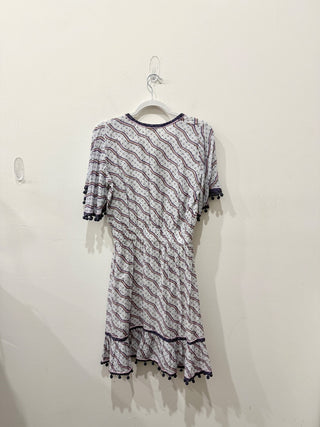 Talitha Printed Pompom Short Sleeve V-Neck Mini Cover Up Dress White/Purple M