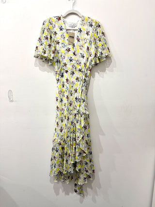 Tanya Taylor Blaire Floral Print Silk-Blend Wrap Flounce Dress Multicolor Womens Size 2
