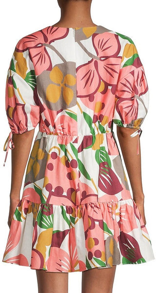 Ted Baker Rhitaa Floral Linen-Blend Tiered Mini Dress White/Pink/Green Women's 5