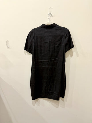 Theory Metallic Silk Scarf Bell Sleeve Mini Shirt Dress Black Women's Size 00