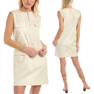 Theory Stretch Split Neck Utilitarian Chino Shift Mini Dress Cream Womens Size 4