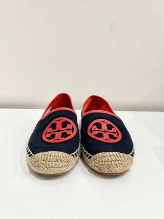 Tory Burch Angus Canvas Slip On Espadrilles Flat with Logo Blue/Orange Women 6.5