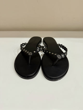 Tory Burch Miller Patent Leather Logo Slip On Flat Thong Sandals Black Women 6.5