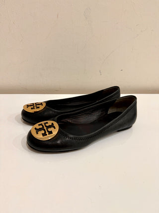 Tory Burch Claire Leather Slip On Scrunch Logo Ballet Flats Black Women's Size 7