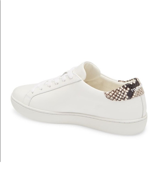 Tory Burch Leigh T-Logo Leather w/ Stamped Snake Print Court Sneakers White 6