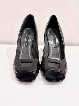 Vintage Gianfranco Ferre Textured Leather Peep Toe Pumps Black Womens 40/US 9.5