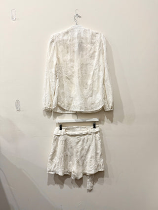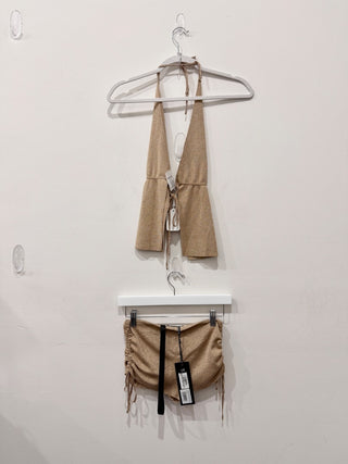 White fox lurex metallic set top and shorts, top M / shorts XS