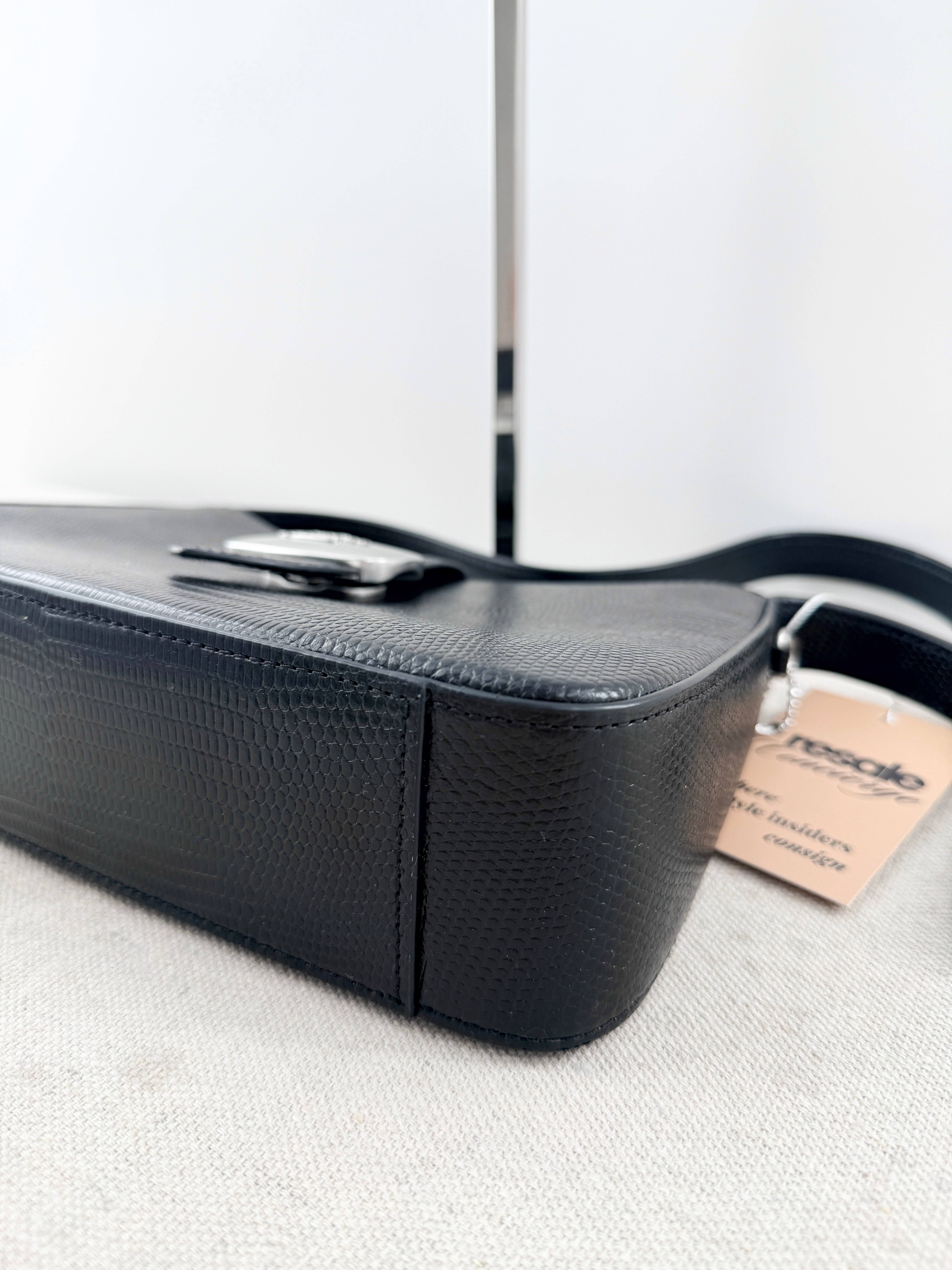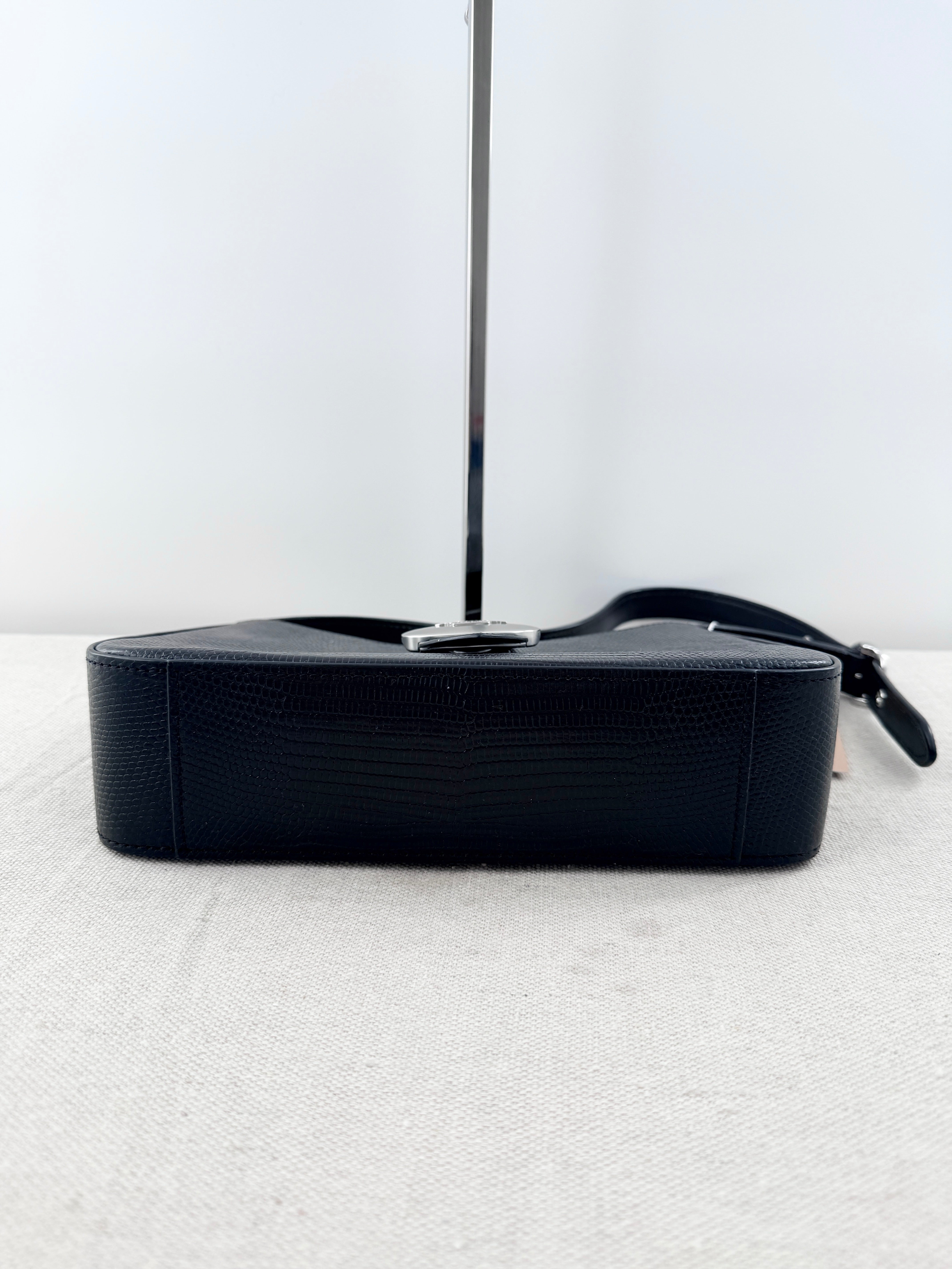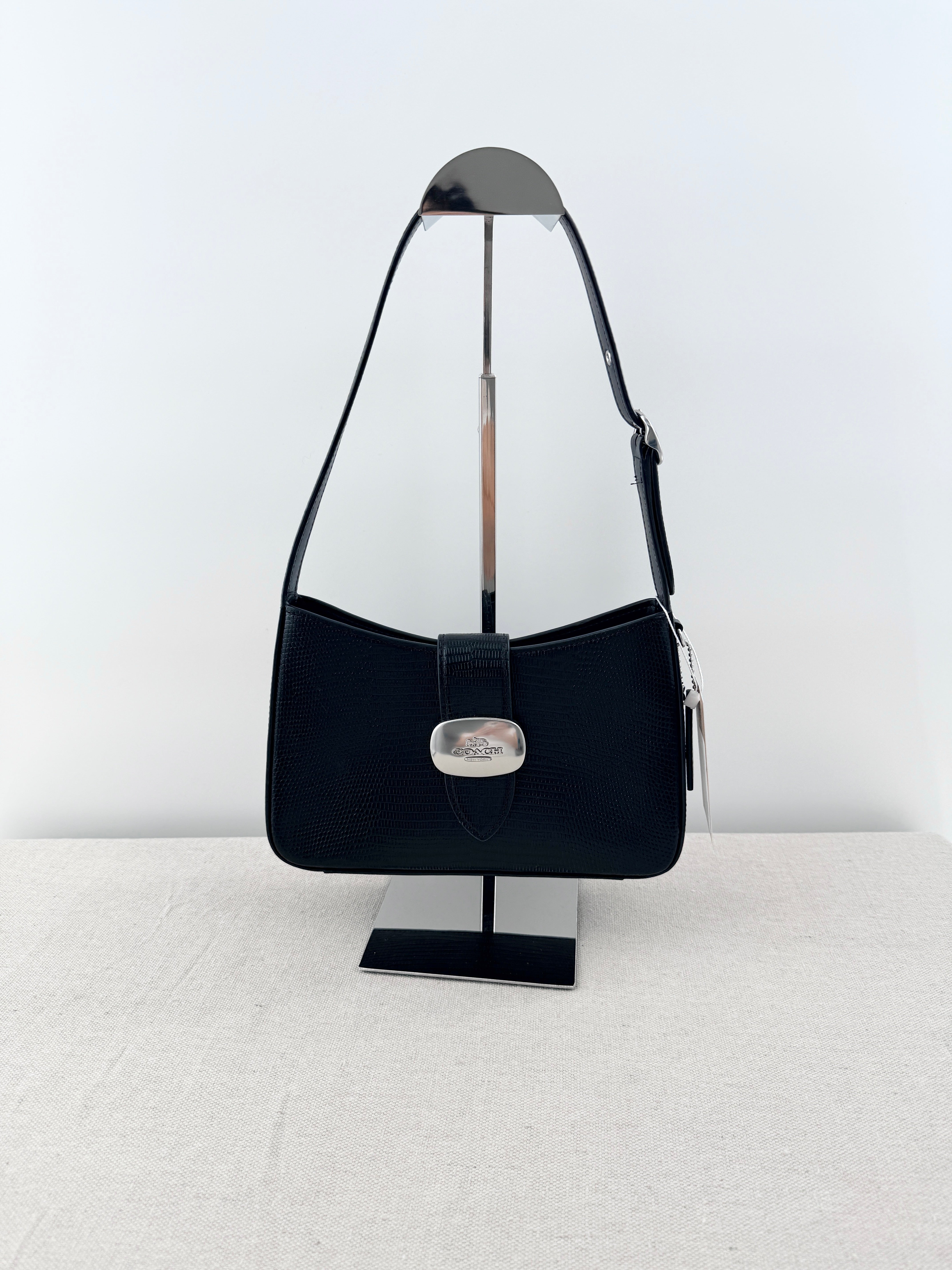Coach Eliza Medium Leather Lizard-Embossed Shoulder Handbag Black