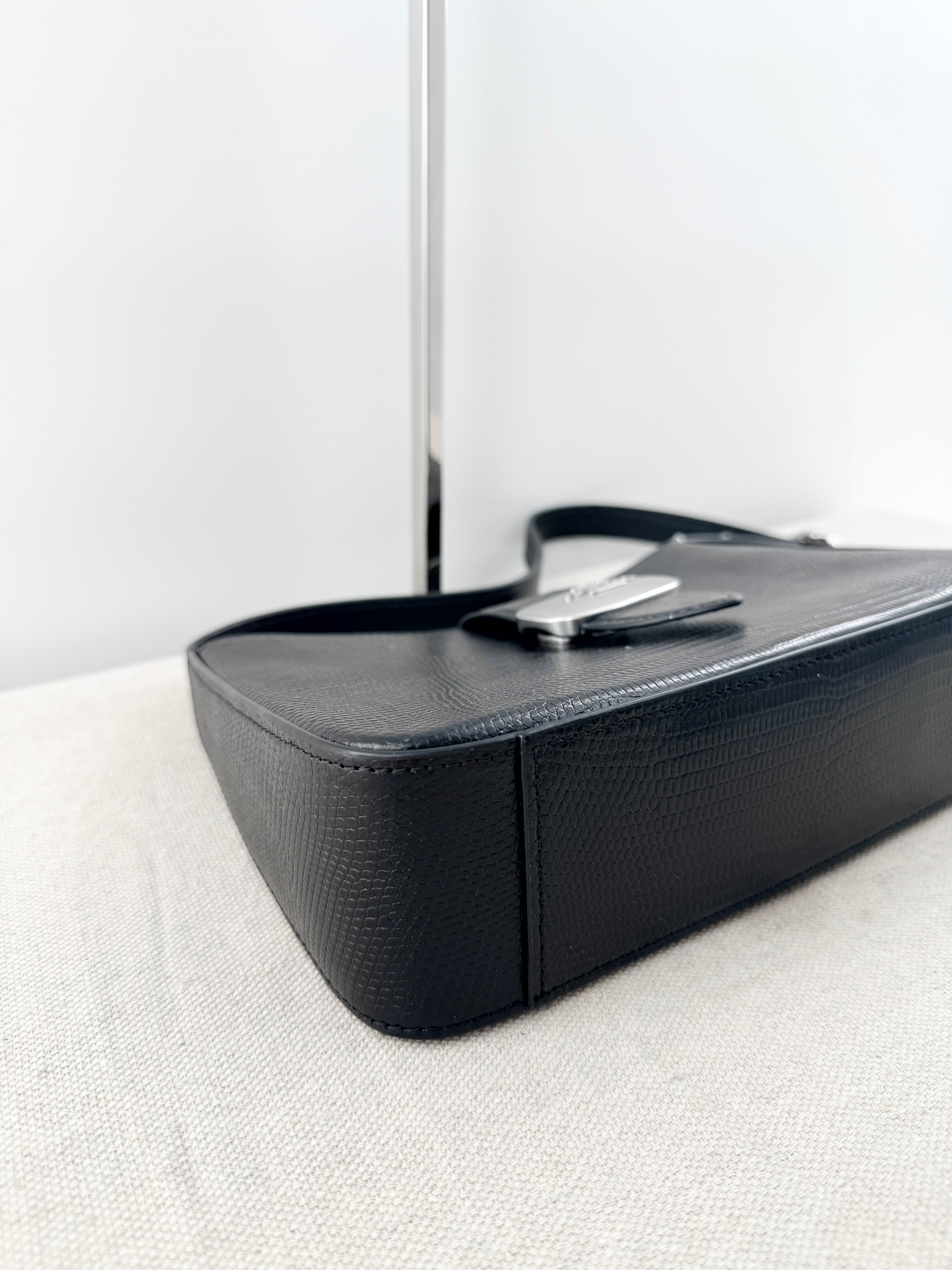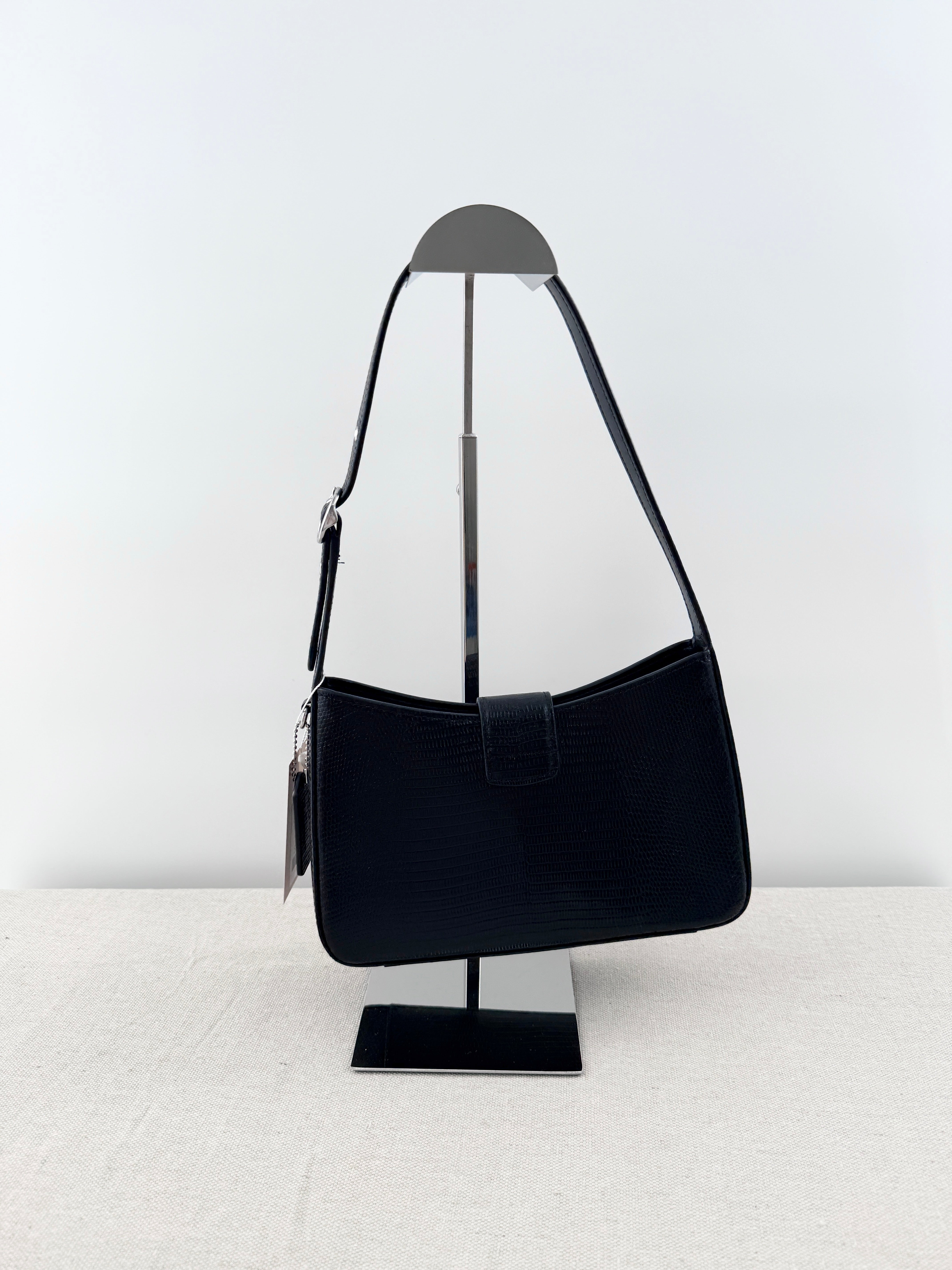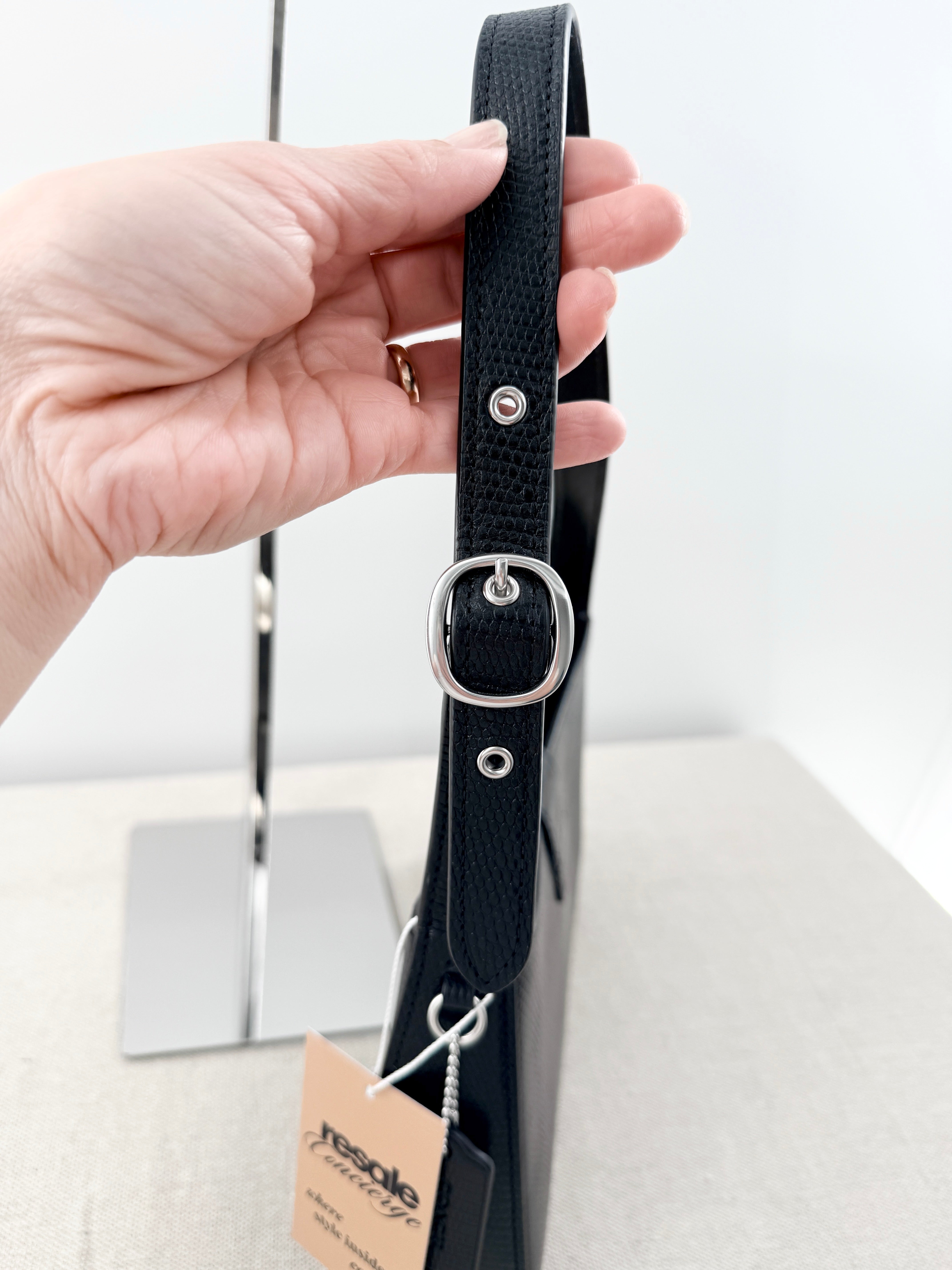 Coach Eliza Medium Leather Lizard-Embossed Shoulder Handbag Black