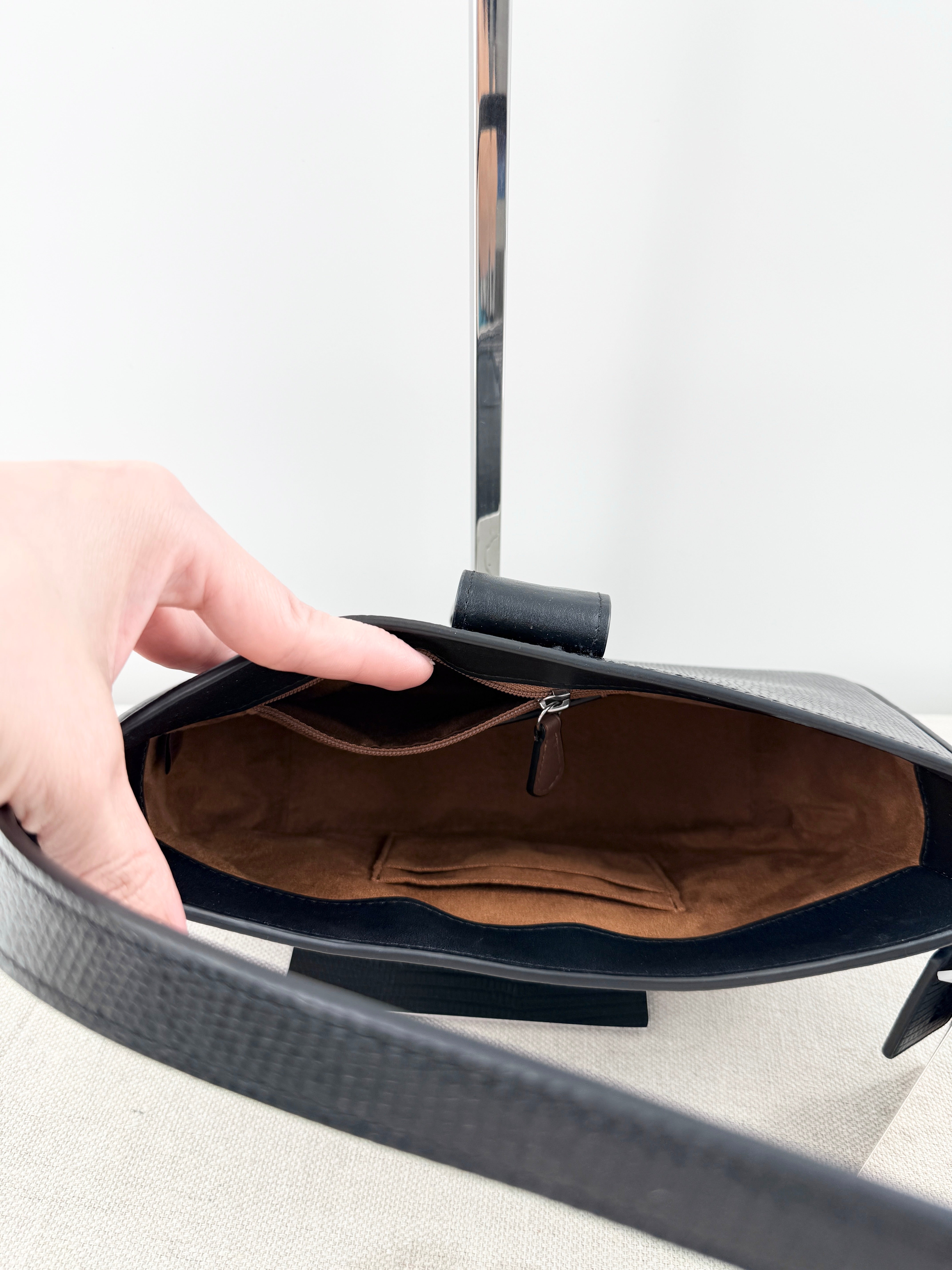 Designed in a medium size, it offers ample space for everyday essentials while maintaining a sleek, structured silhouette.