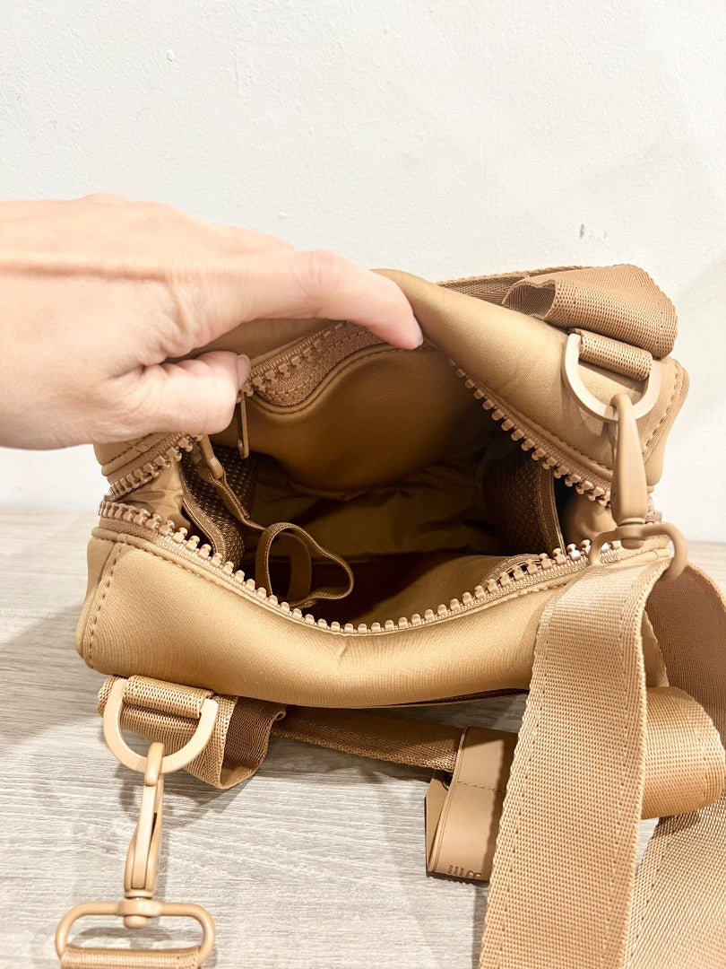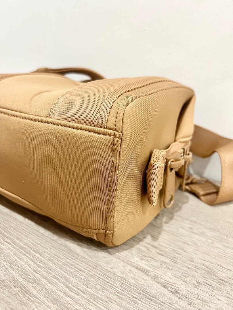 worn 1 x excellent condition, no flaws, has some minor dents on the neoprene. clean width 8.5'' height 7'' depth 4''