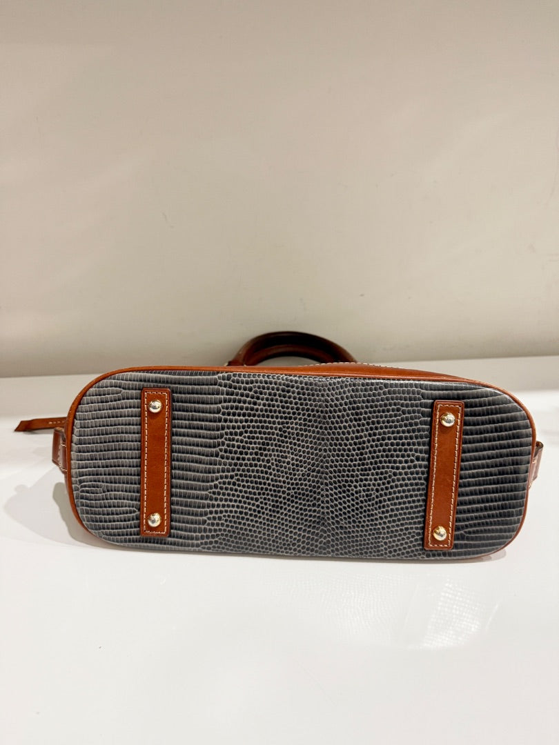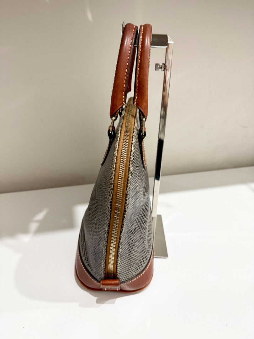 moderately used good condioion, has darkening and softening on handles and light staining in interior, some corner wear