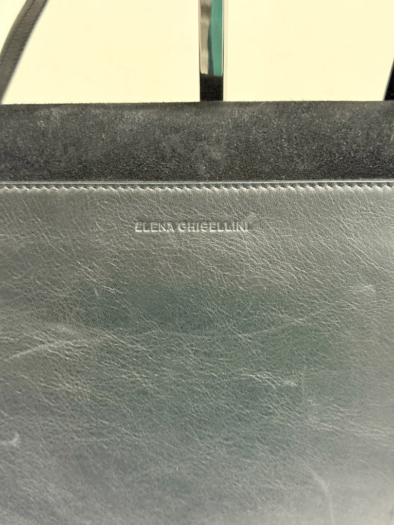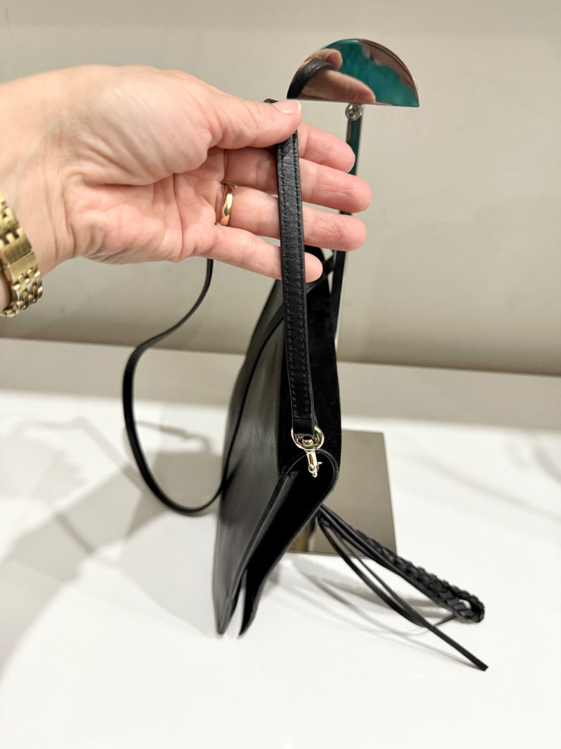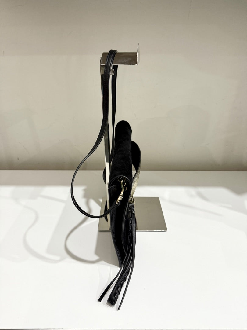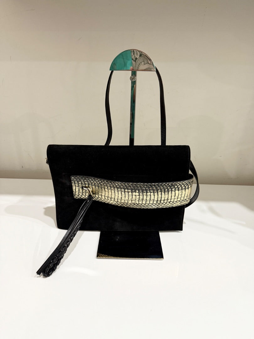 Elena Ghisellini Suede and Leather Flap Shoulder Handbag Black