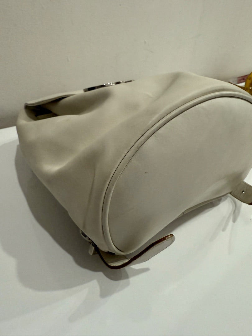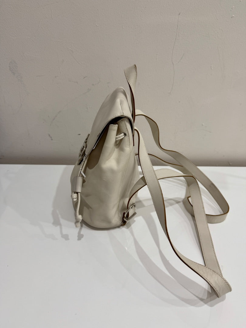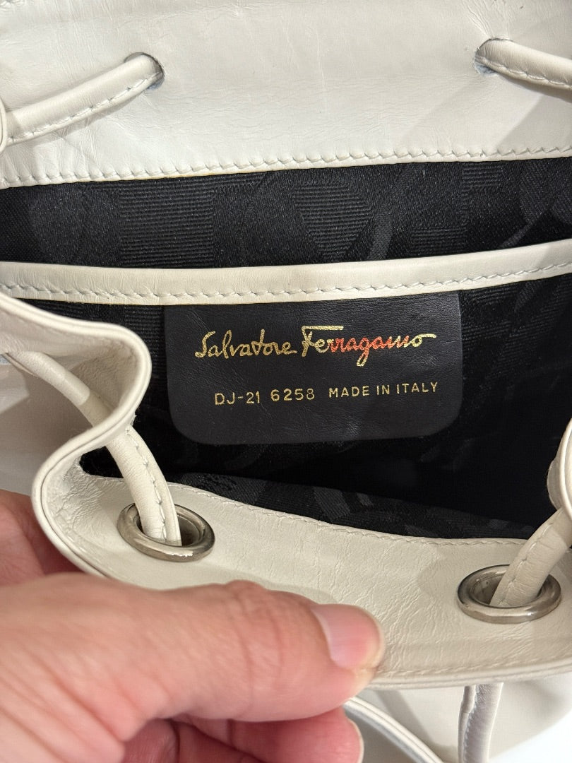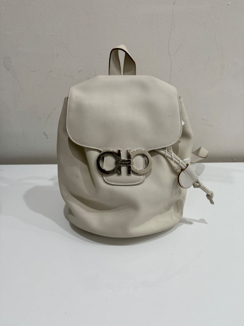 Salvatore Ferragamo Leather Small School Drawstring Backpack White / Silver