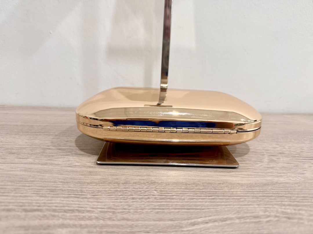 MANGO Women's Metallic Clutch Handbag Long Removable Strap Gold