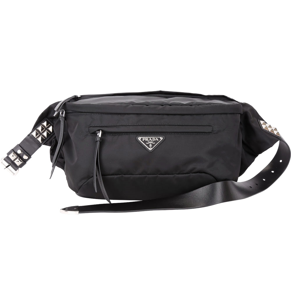 Prada Silver Studded Nylon Chest Shoulder/Waist Belt Bag Black