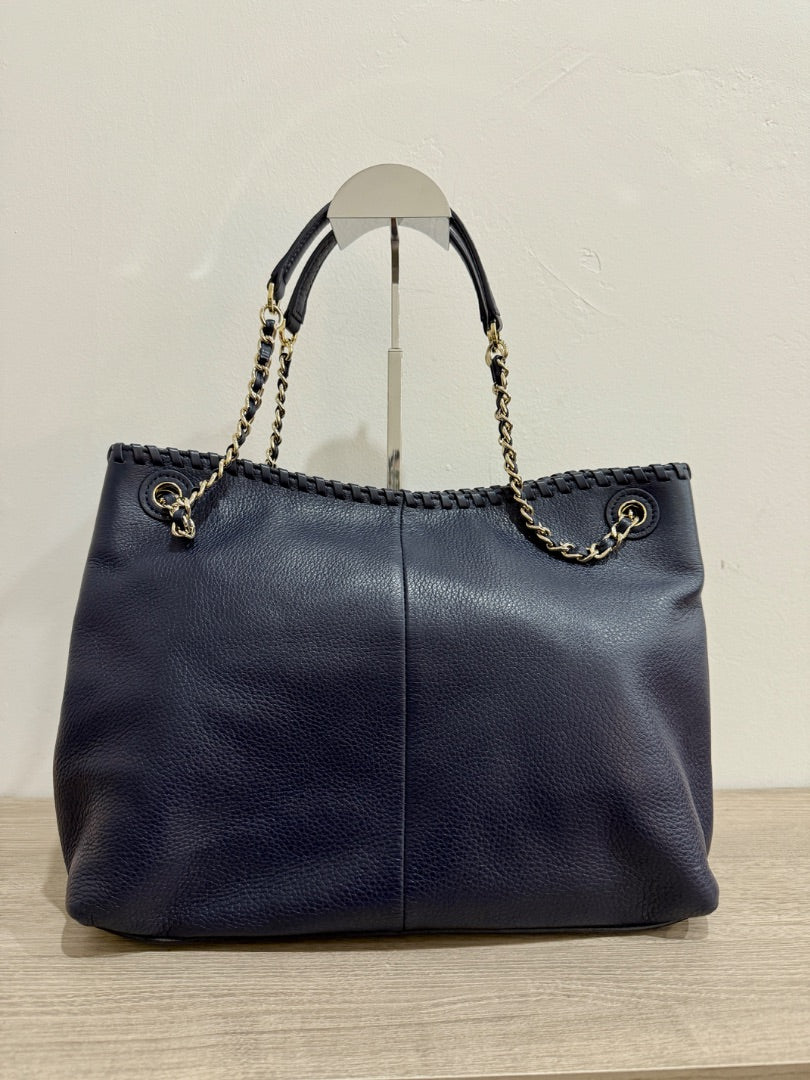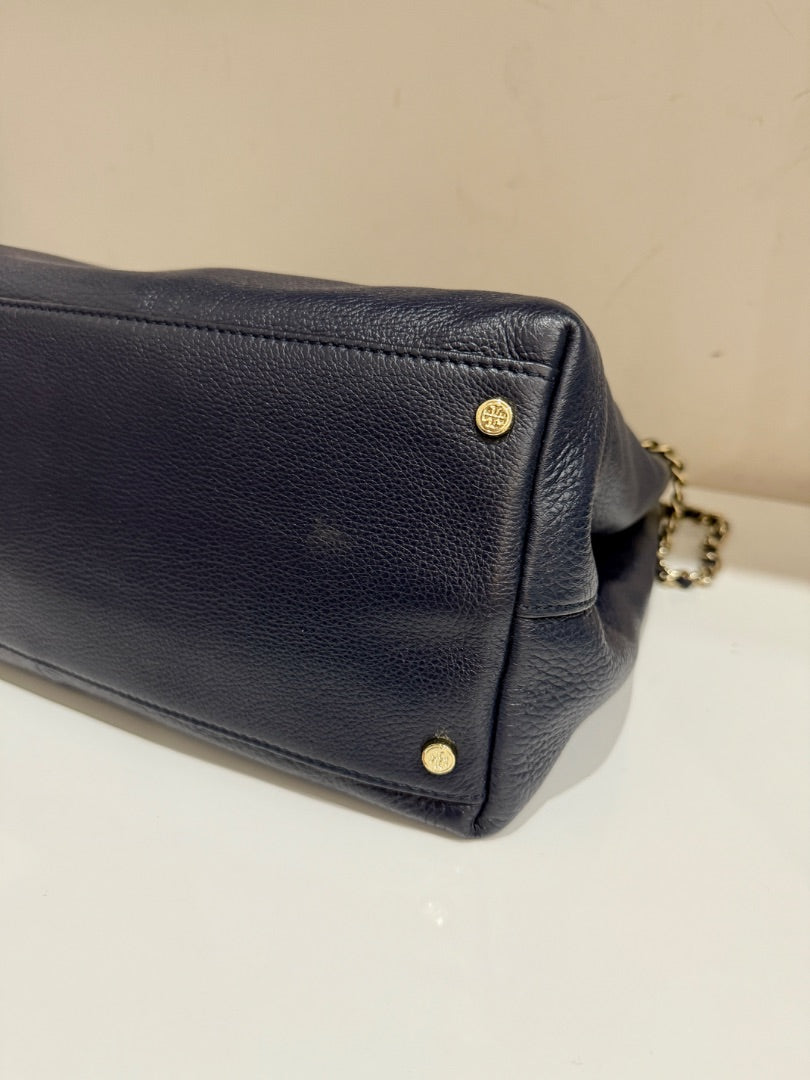 Tory Burch Navy Blue Large Leather Chain Strap Tote Handbag