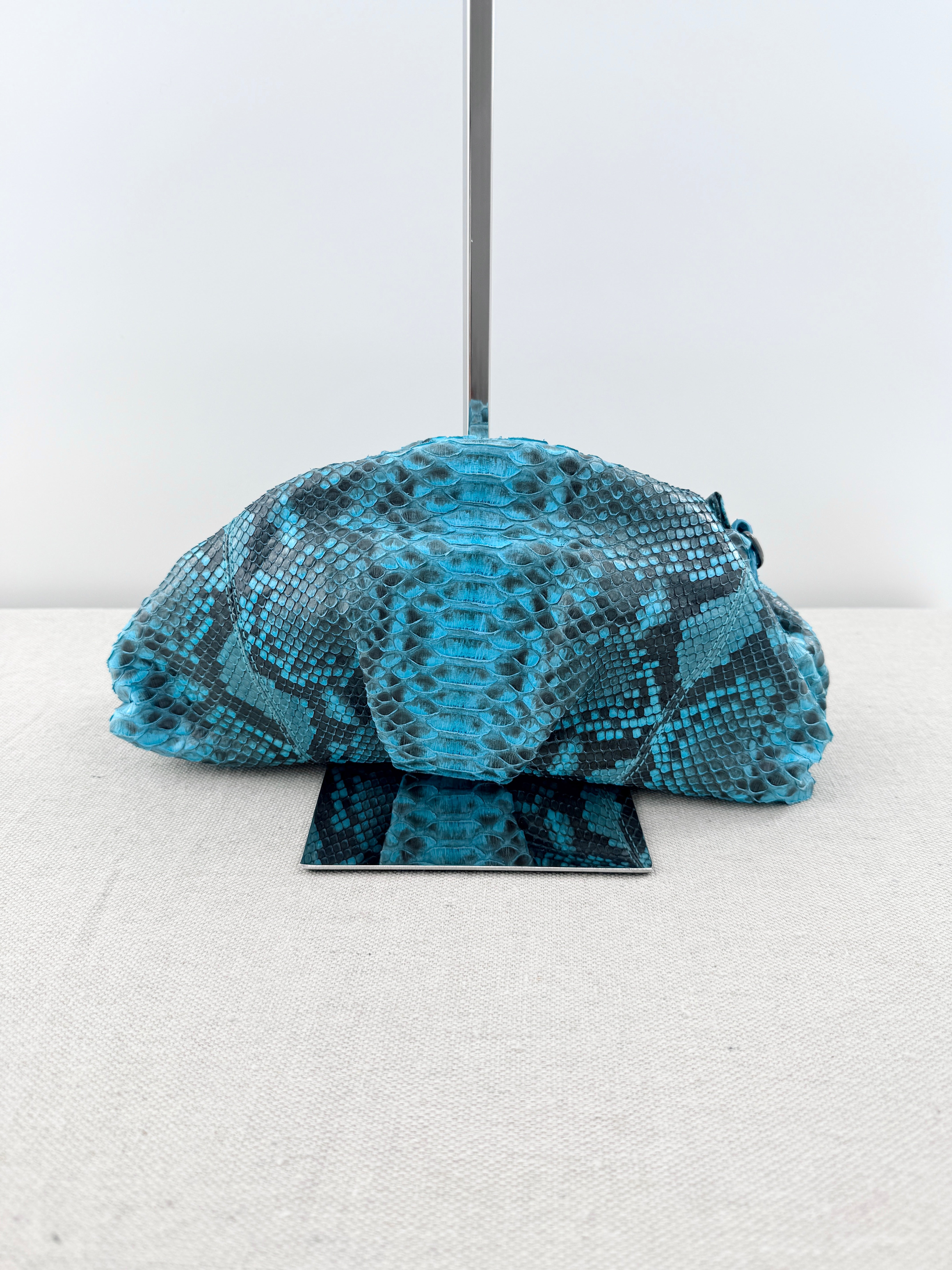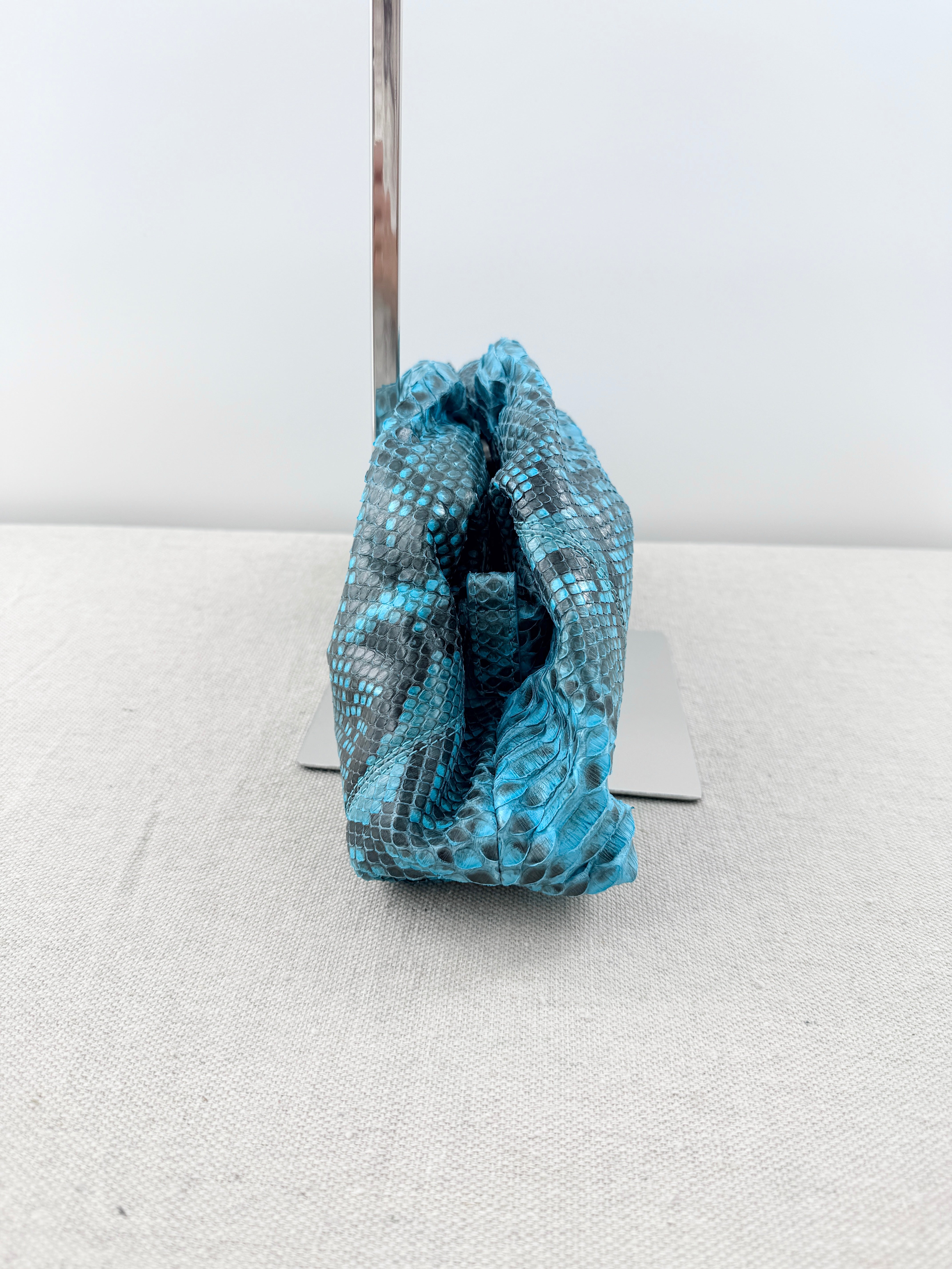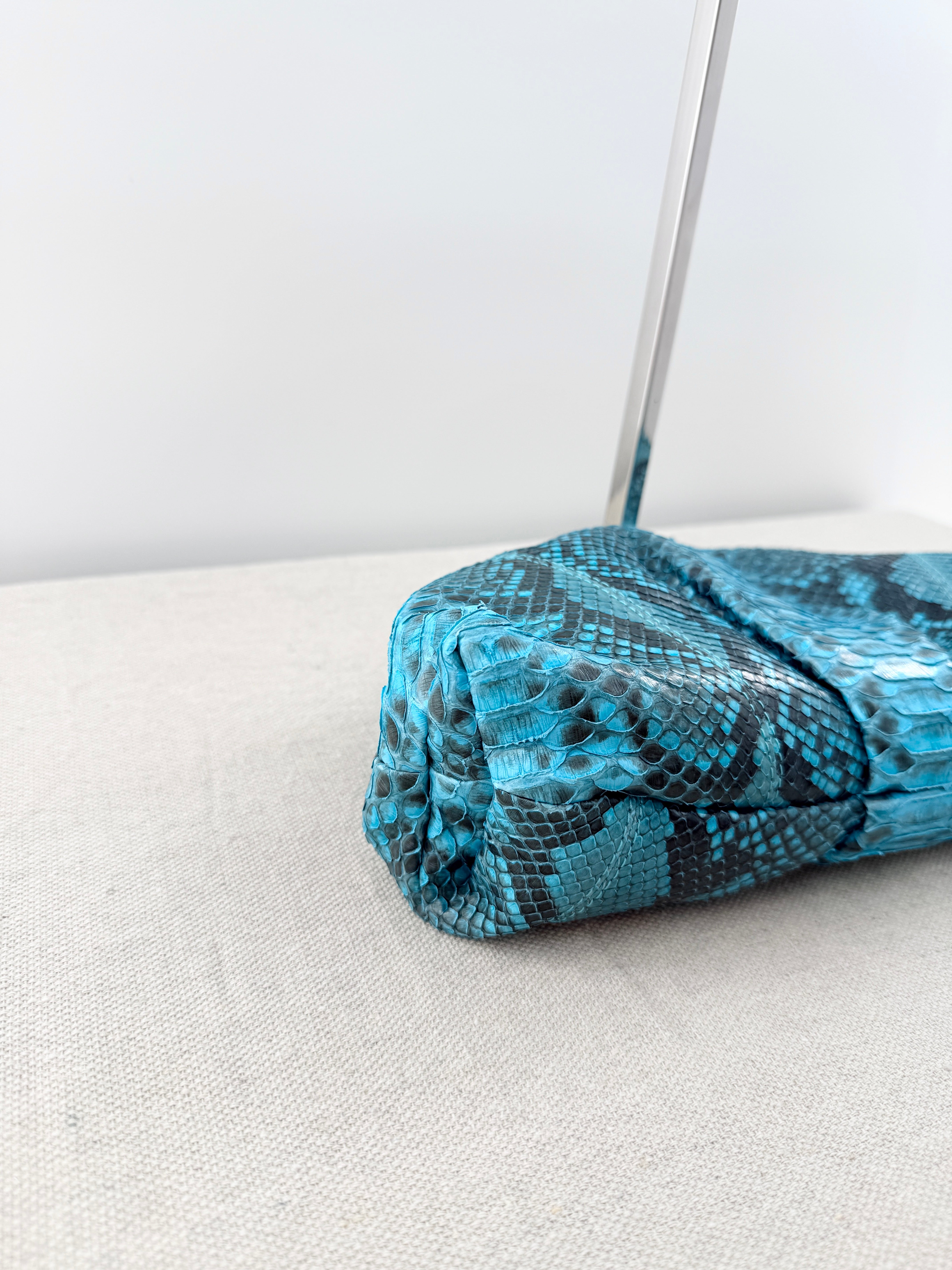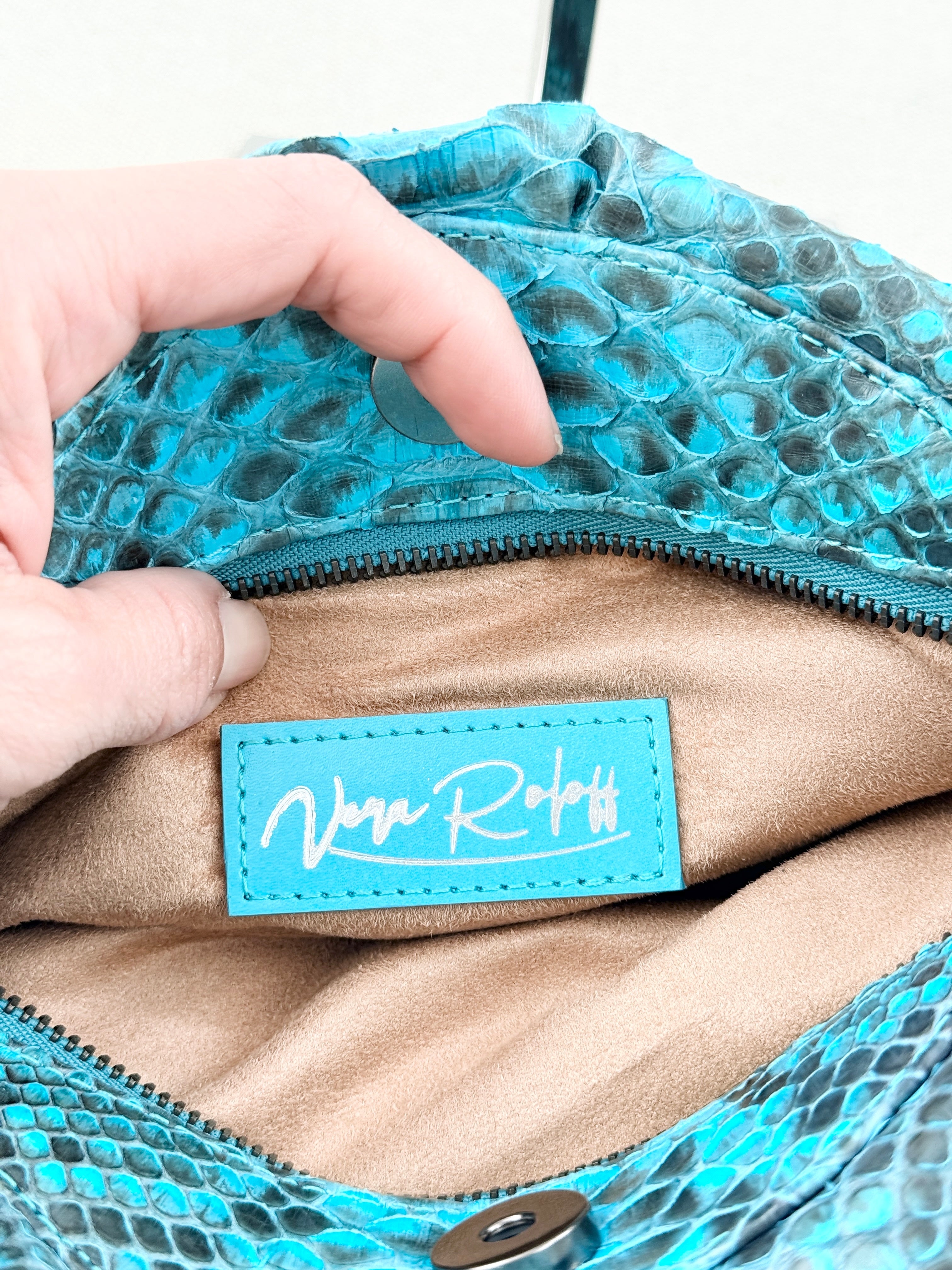 Vera Roloff Python Skin Leather Clutcy Handbag Turquoise Blue Black