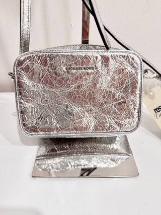 Michael Kors Jet Set Small Camera Crinkled-Leather Crossbody Bag Silver Women's