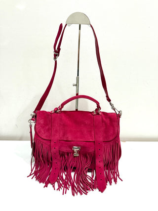 Proenza Schoulder Suede Tiny PS1 Fringe Satchel Bag Raspberry Medium