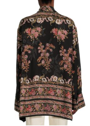 Etro Giacca Floral Silk Blend Floral Kimono Blazer Jacket Black/Pink 42 IT/US 6