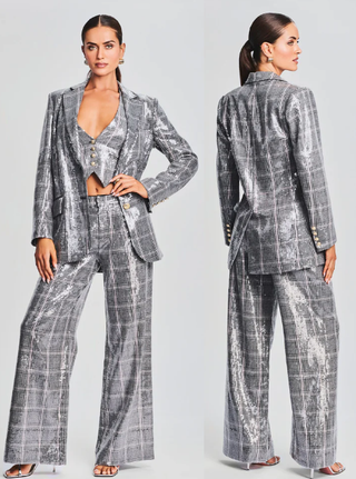NWT Retrofete Enid Sequin Notch Lapel Single Breasted Blazer Grey Plaid Womens S