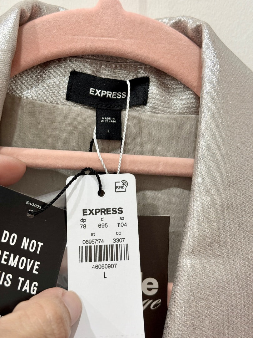 NWT Express Matching Set; Blazer & Pants Metallic Silver Top L / Bottoms US 12 R