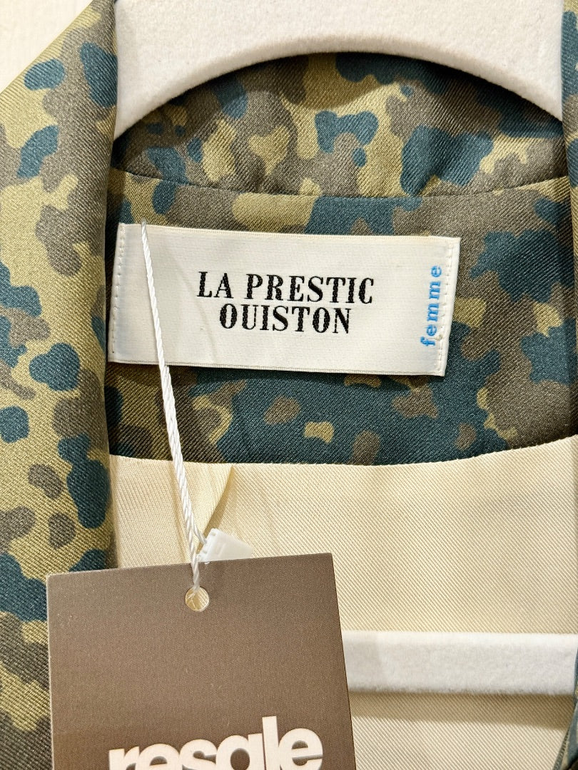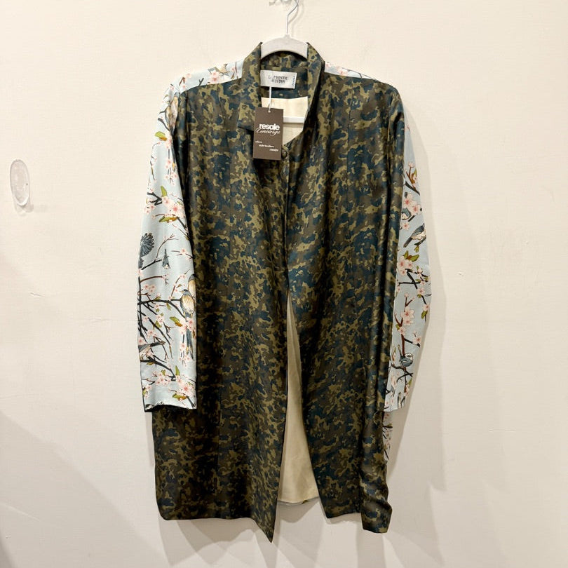 La Prestic Ouiston Mixed Pattern Silk Open Duster Blazer Green/Blue Women's M/L