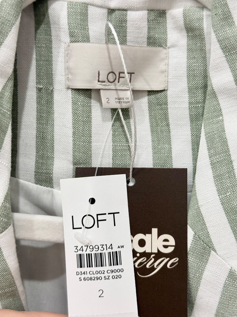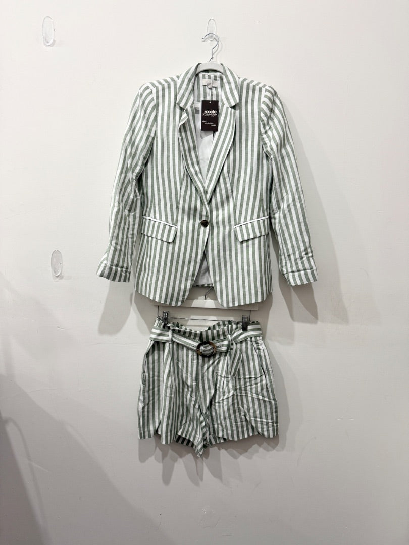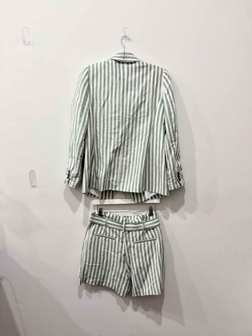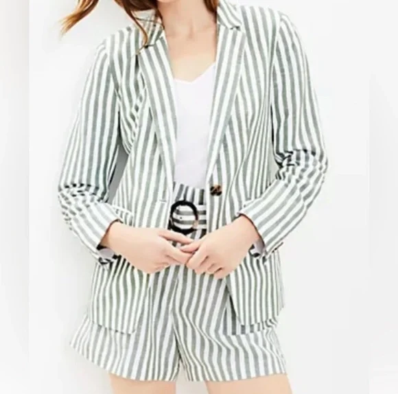 NWT Loft Striped Suit Set: Single Breasted Blazer & Shorts White/Green Women's 2