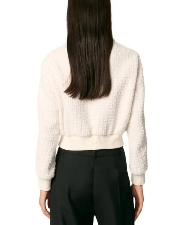 Maje Long Sleeve Collared Crop Tweed Blazer Jacket White Women's 34 FR / US 2