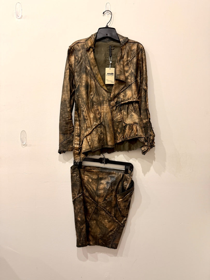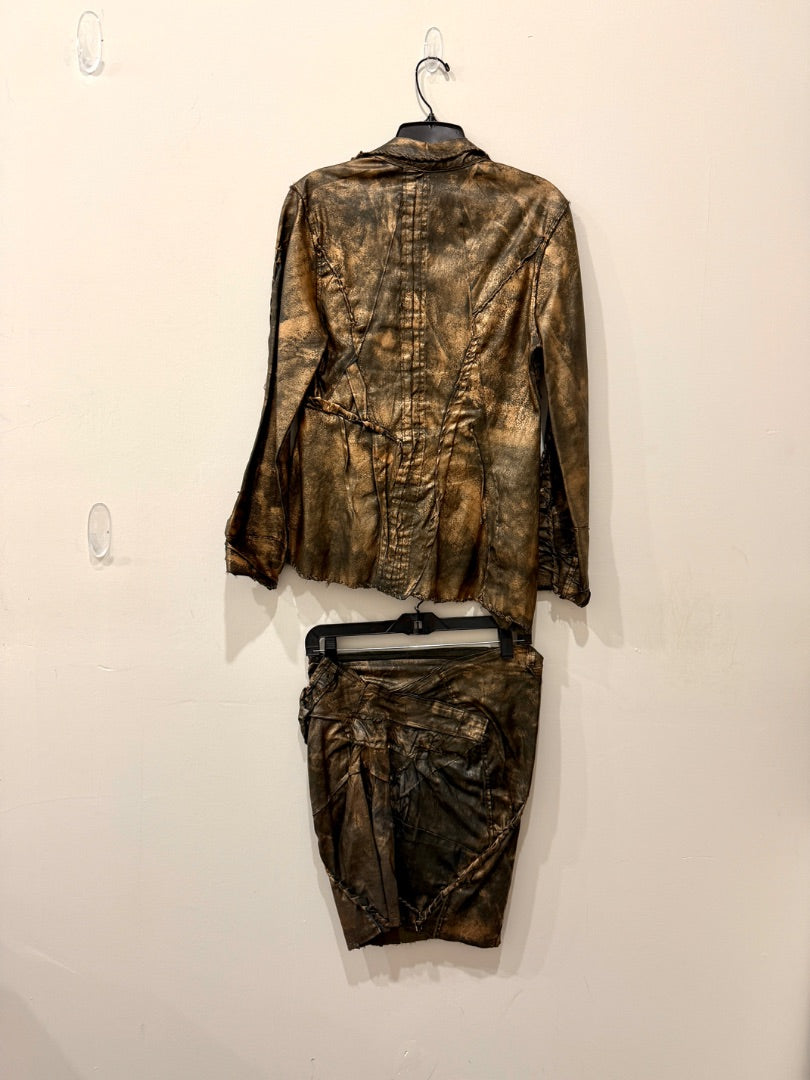 Tatiana Palnitzka Blazer and Mini Skirt Set Navy Green/Gold Women's Size Small