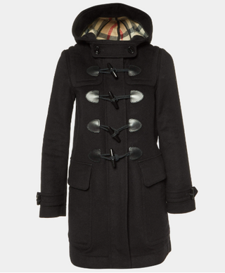 Burberry Brit Wool Blend Finsdale Hooded Duffle Coat with Hood Black Women's L