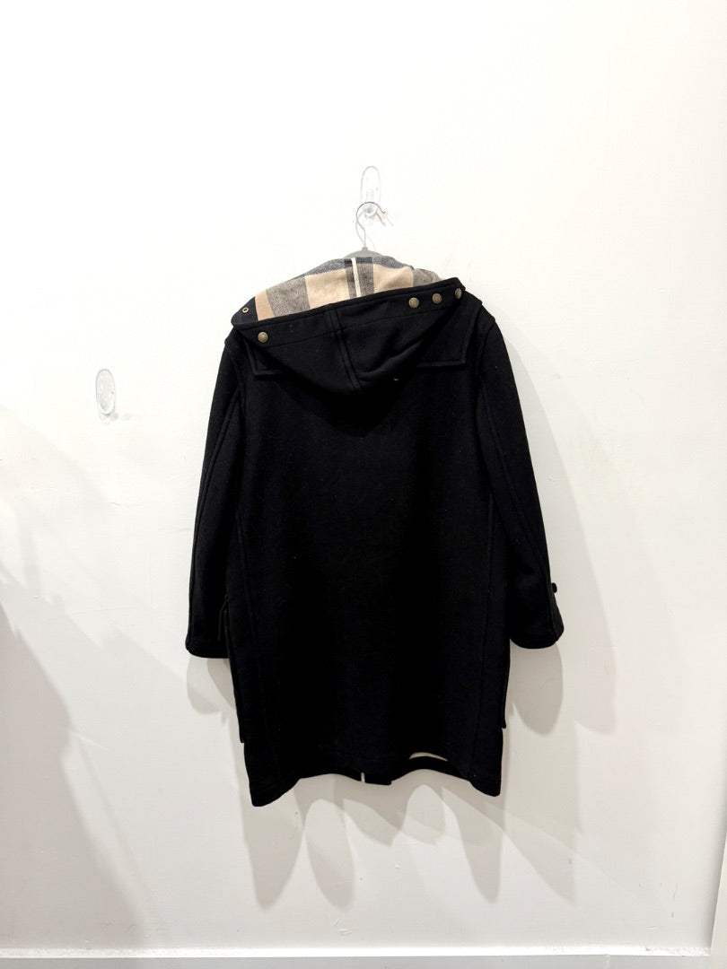 Burberry Brit Wool Blend Finsdale Hooded Duffle Coat with Hood Black Women's L