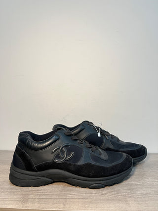 CHANEL Suede Leather Chunky CC Lace Up Trainer Sneakers Triple Black Mens 43/9.5