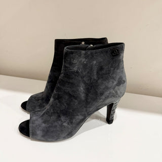 Chanel Interlocking CC Logo Suede Ankle Booties Gray/Black Women's Size EU 41