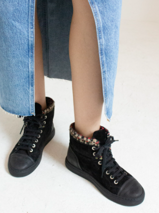 Chanel Suede with Tweed Trimmed Lace Up High Top Sneakers Black Women's EU 41.5