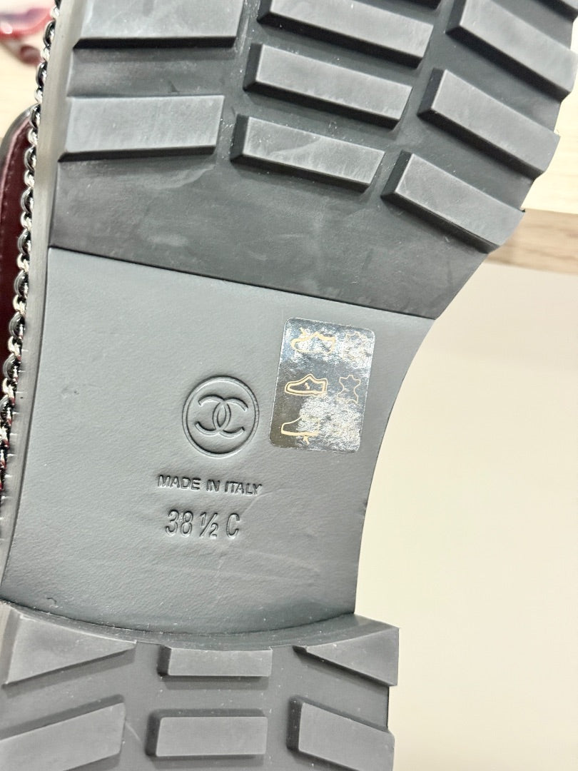 NWOT Chanel Quilted Patent Leather CC Pearl Mid-Calf Combat Boots Black EU 38.5