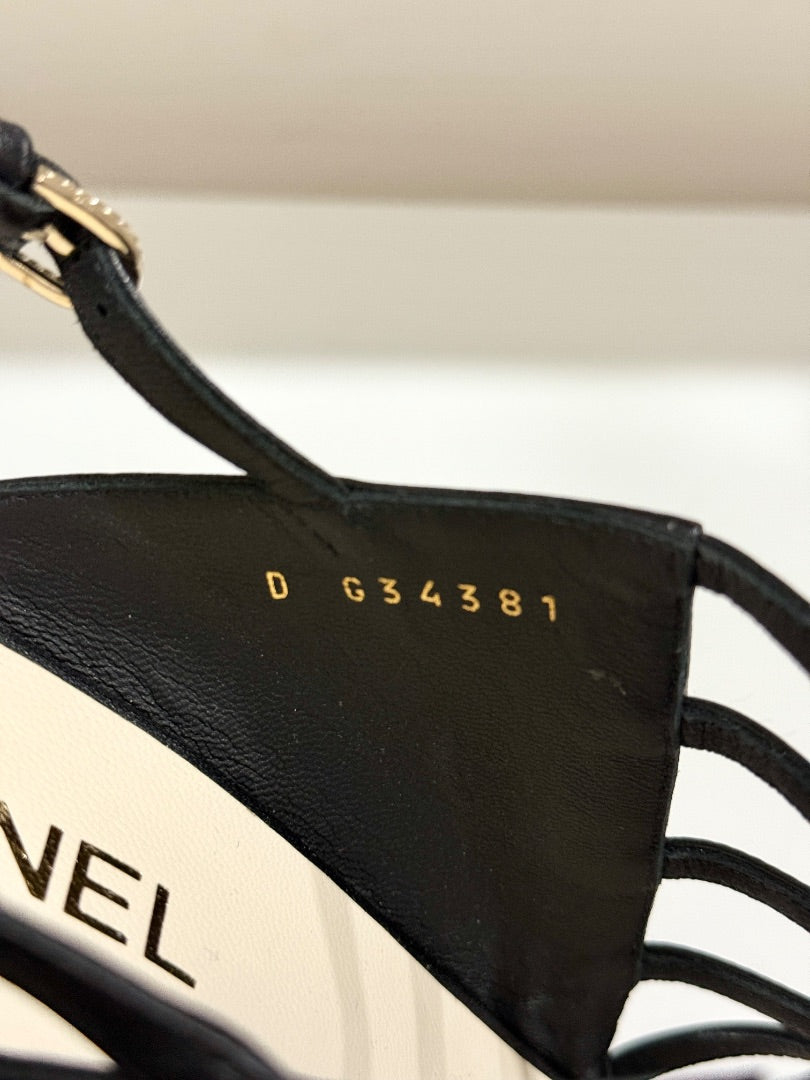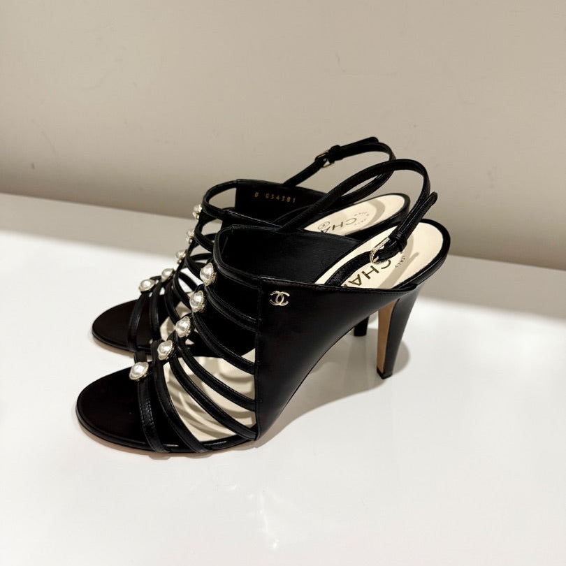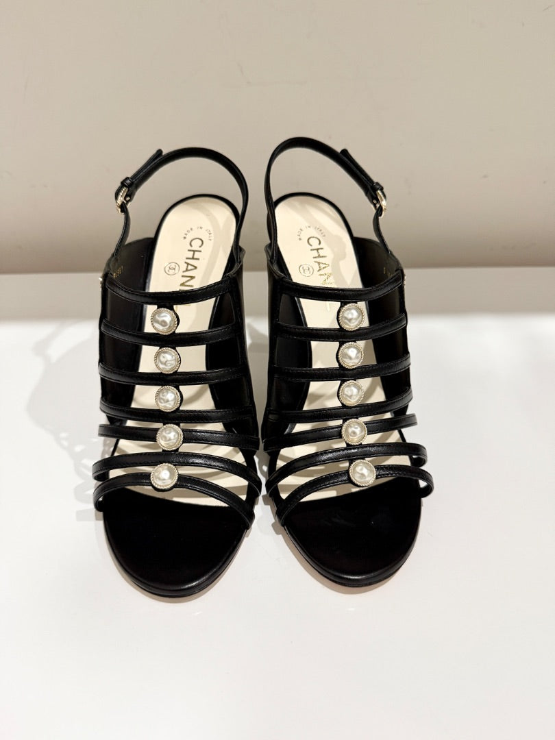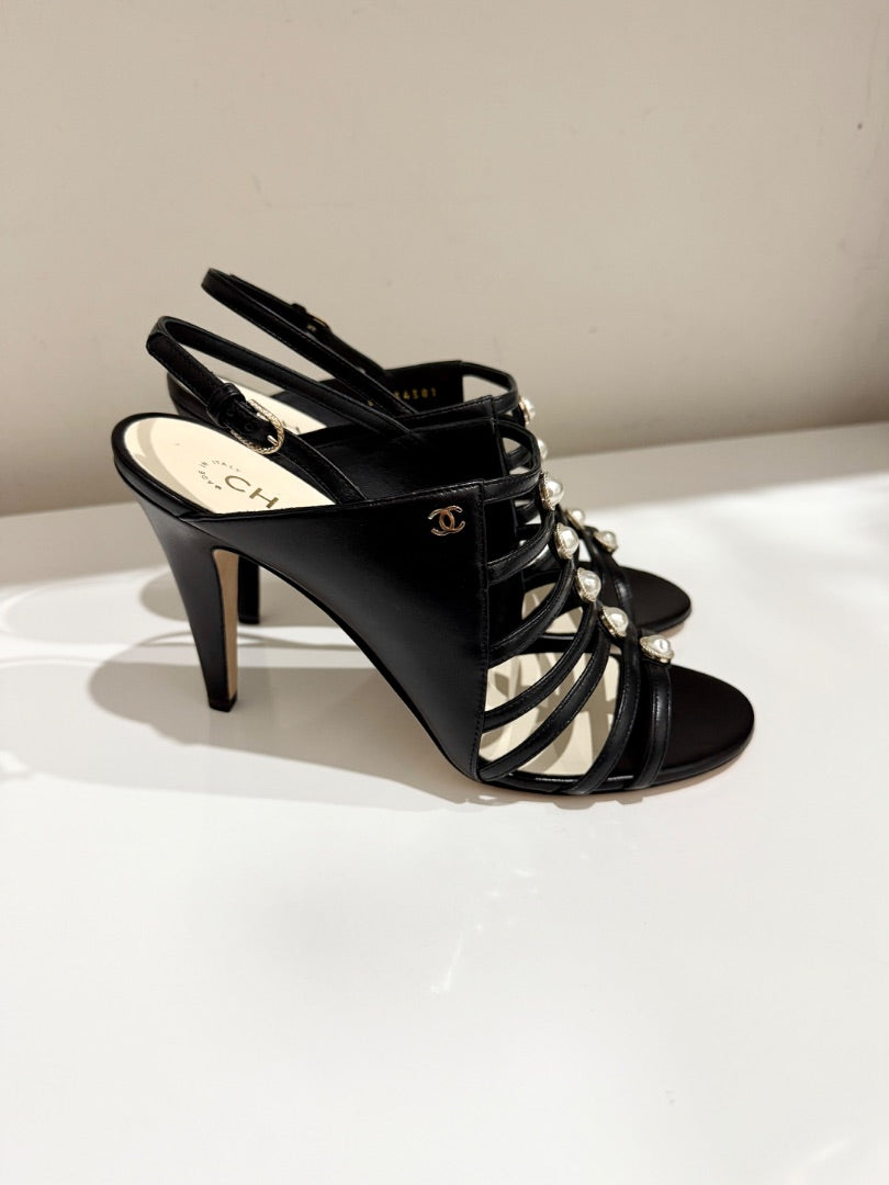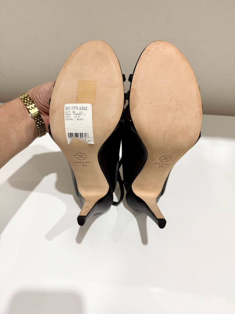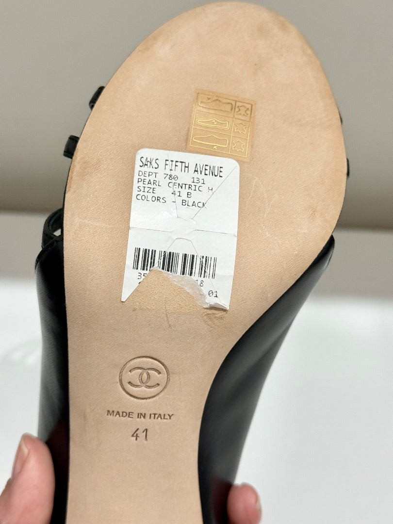 NWOT Chanel Leather Embellished Pearl Slingback Sandals Black Women's Size EU 41