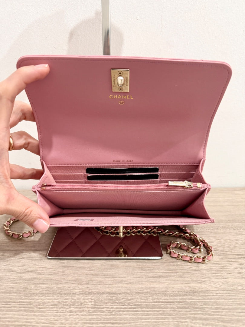 The versatile chain strap allows for shoulder or crossbody wear, while the quilted design reflects Chanel’s iconic style. Perfect for evening events, parties, or adding a luxe touch to any outfit.