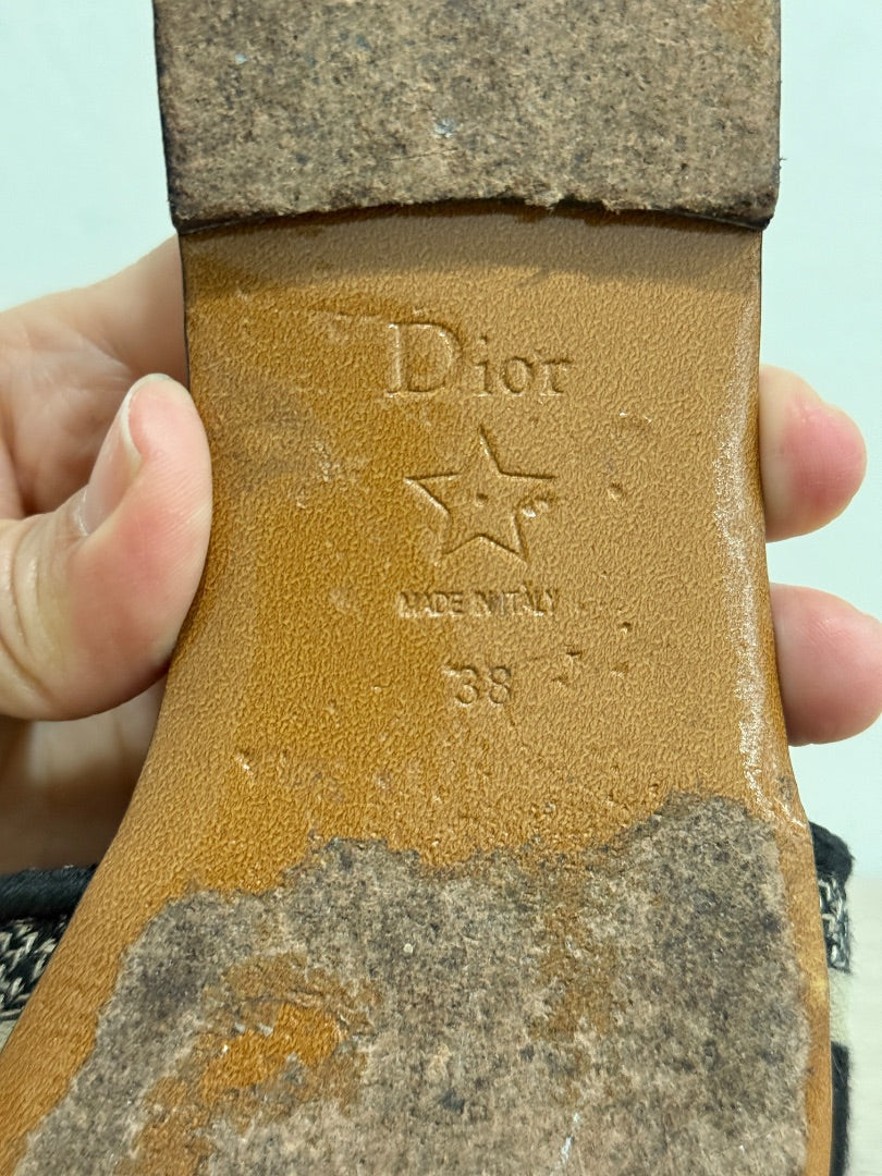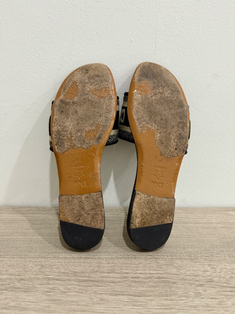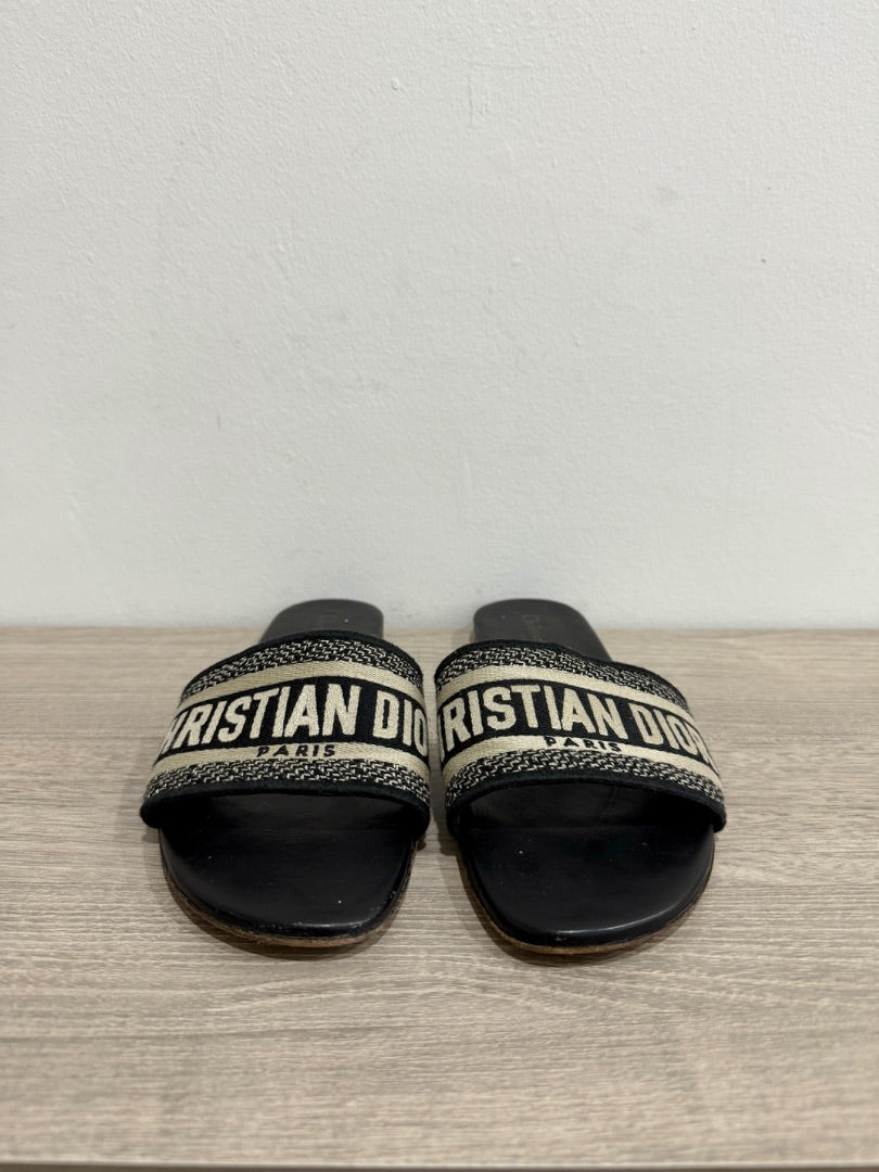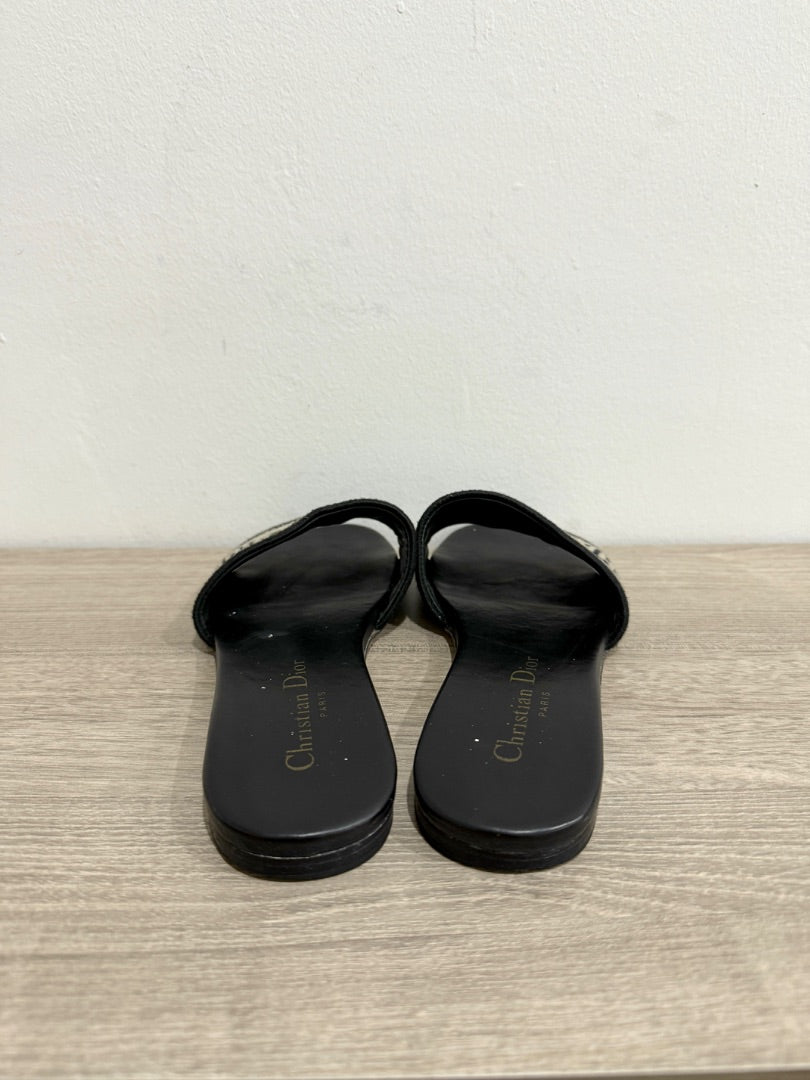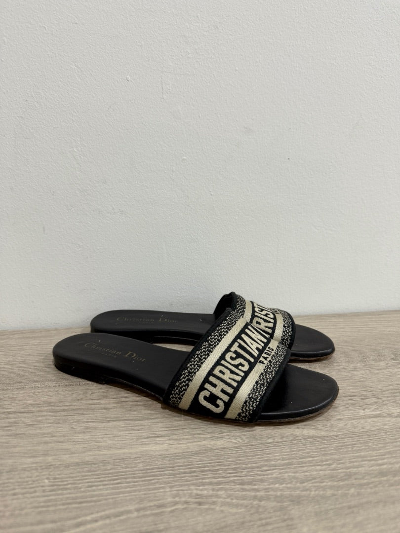 DIOR Dway Embroidered Christian Dior Cotton Slide Flat Sandals Black Women's 38