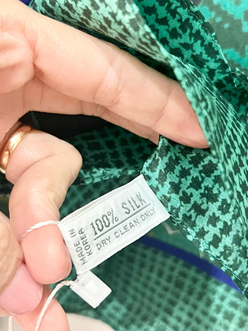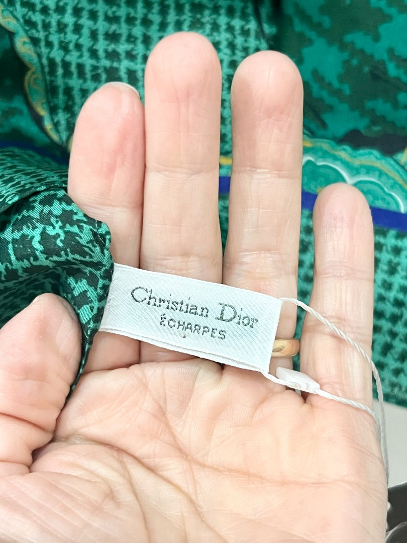 Vintage Dior Echarpes Autumn Green Hues Blue Floral Paisley Silk Scarf 31''x 31'