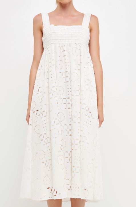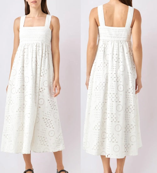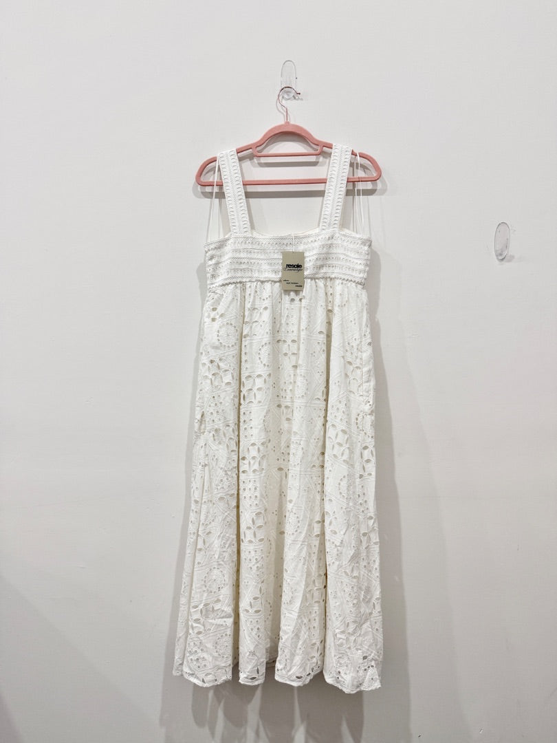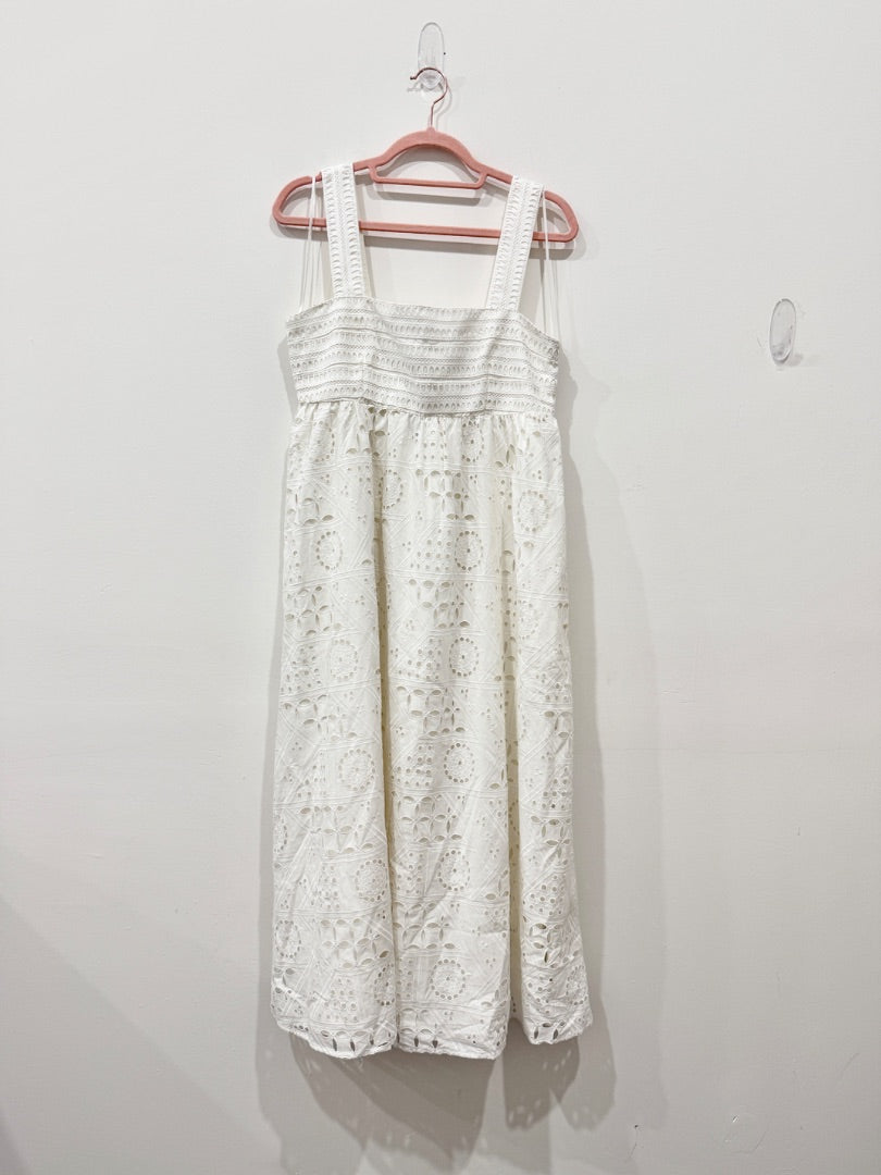 English Factory Broderie Anglaise Square Neck Maxi Dress White Women's Size Small