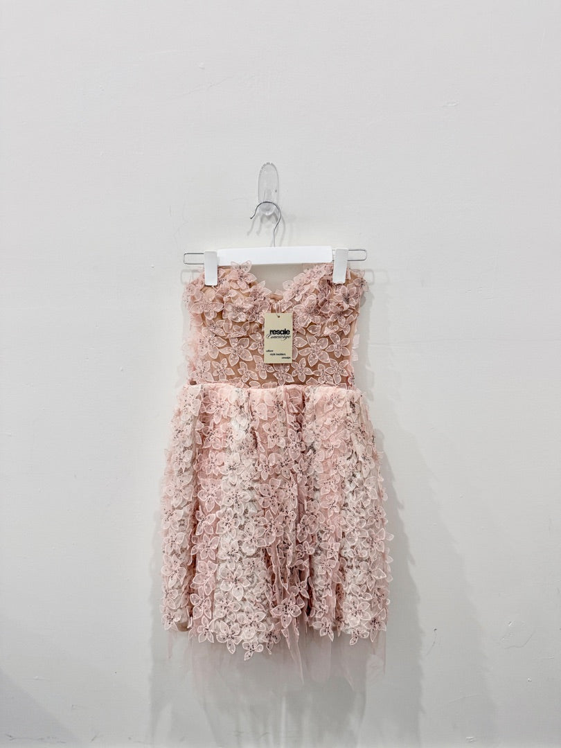 Giambattista Valli X H&M Floral Lace Strapless Sweetheart Mini Dress Pink Size 4