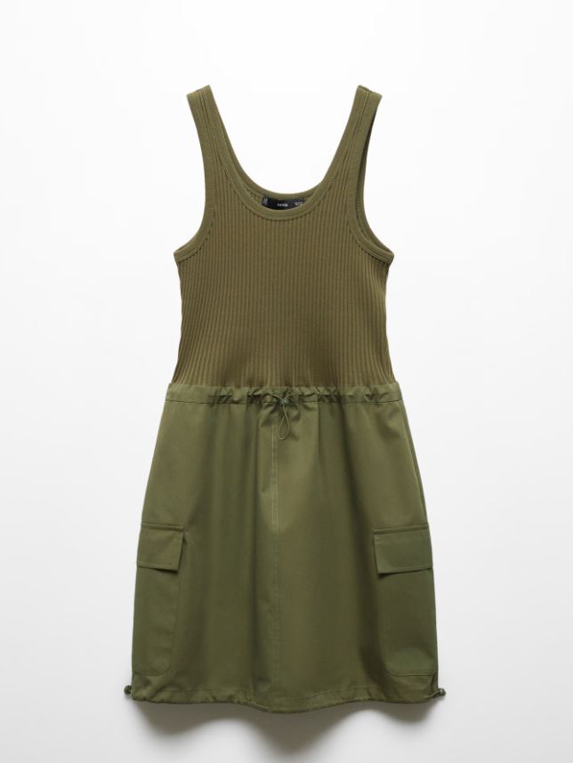 NWT Mango Combined Parachute Morrone Knit Mini Dress Olive Green Wome's Size XS